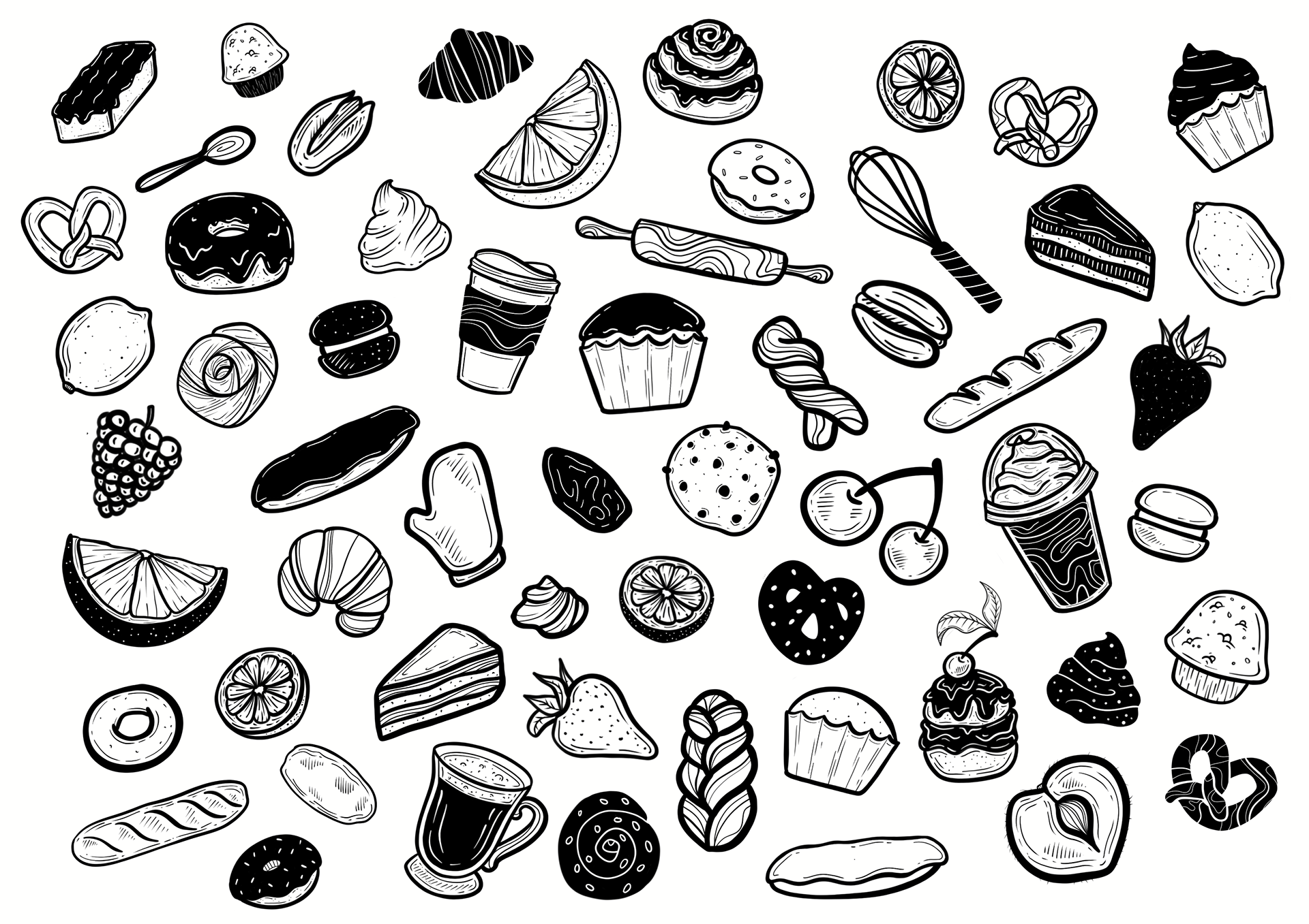 Cute bakery illustrations for multiple use in product packaging, merchandise, wall mural concepts.