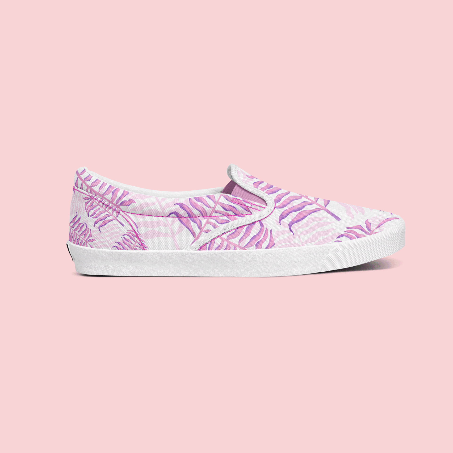 Inverted purple / pink palm tree - repeat pattern on canvas shoe.