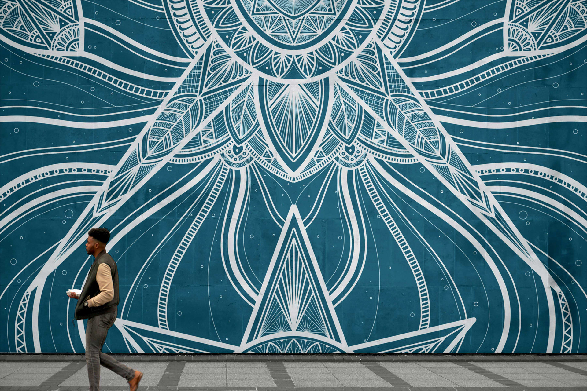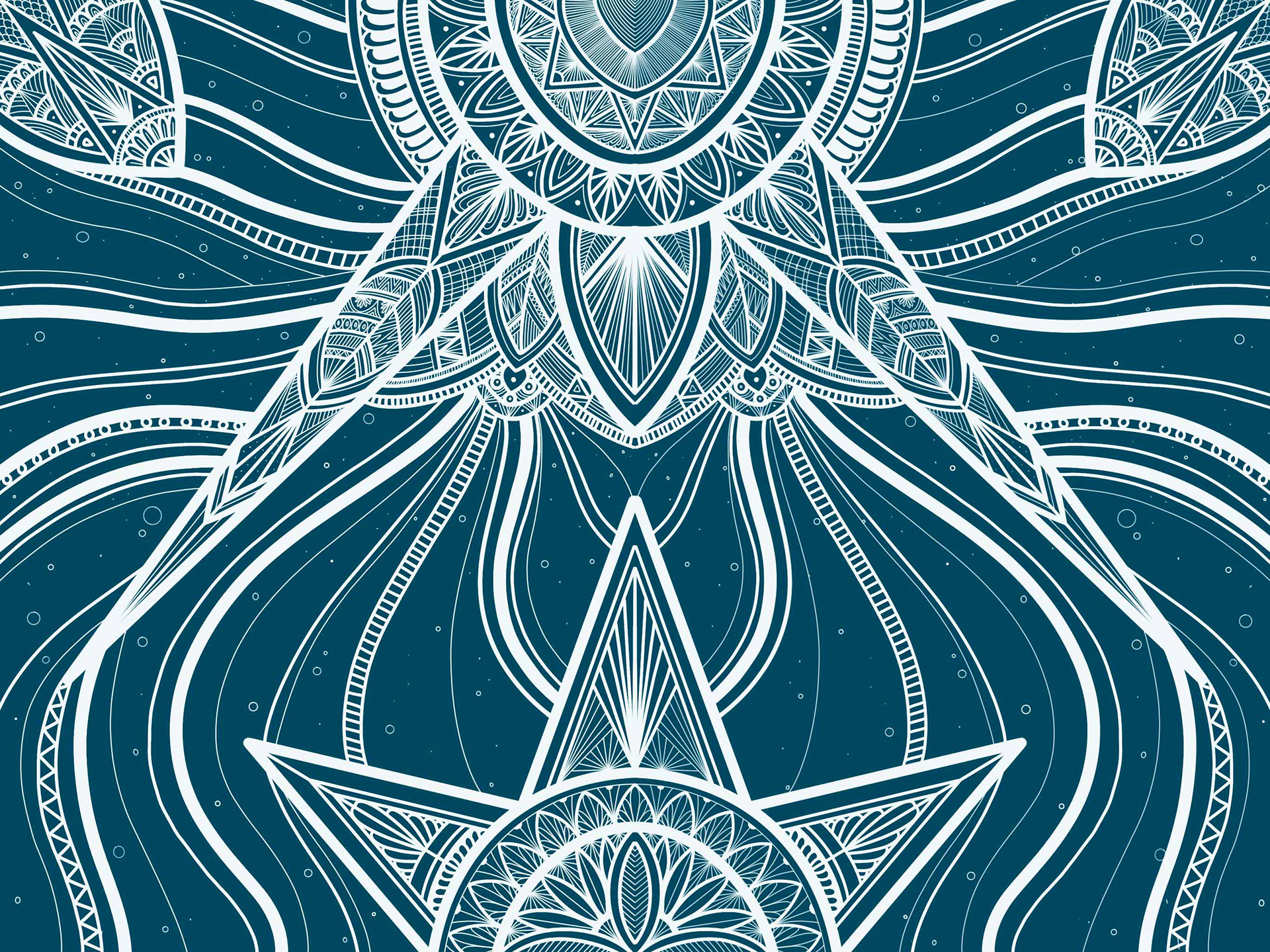 Underwater illustration with geometric, detailed patterns for a large scale mural concept.